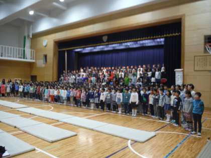 最後の演目は,「全校合唱」です。1年生〜6年生までの子どもたちの歌声が重なり,素敵な合唱を見せてくれました。