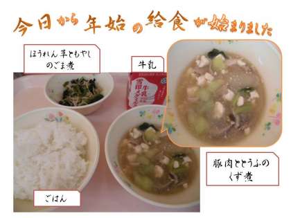 今日から年始の給食が開始しました。