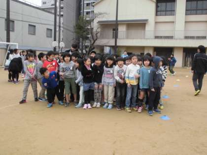 寒い日でしたが,運動場で準備体操をして,
