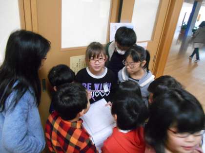 今年初の下京渉成スポーツフェスタが開催されました。学校内をグルグルまわり,いろんなゲームやクイズにチャレンジしていきます。たてわり班の友だちと一緒に協力して進んでいきました。