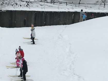山から滑り降りるためには坂の上を目指して,カニさん歩き。