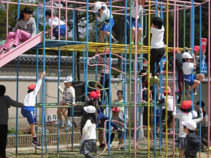 総合遊具での安全な遊び方を学習し,休み時間には外に出て遊具で遊んだり鬼ごっこをして遊んだりしています。早く運動場に出て遊びたかった子どもたち。やっと運動場で遊ぶことができるようになり,元気いっぱいに体を動かしています。