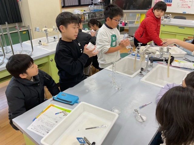 理科の学習では食塩は水に限りなくとけるのかを調べました。