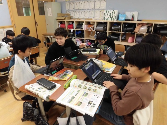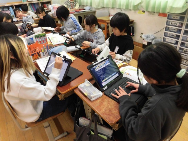 学習問題を立て、予想に基づいてそれぞれのテーマで調べ学習を進めています。