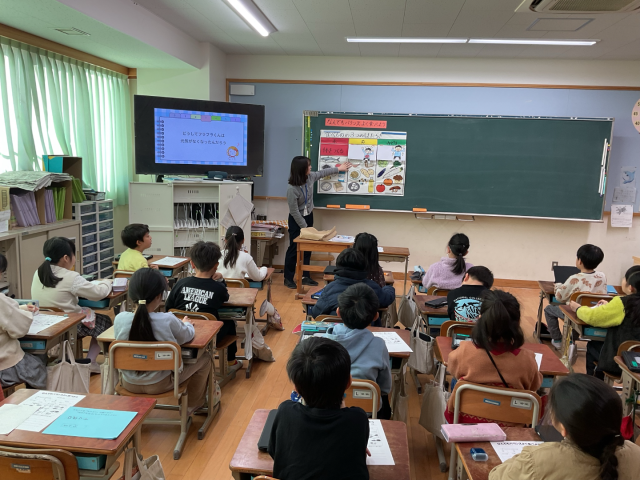 今日は、栄養教諭の菊地先生にバランスの良い食事について教えていただきました。黄色と赤と緑の食べものには、どんなものがあるのかを確認したあと、実際に給食に出てくるメニューを使いながらオリジナルの献立を考えました。食事のバランスまで考えられるようになりたいですね!