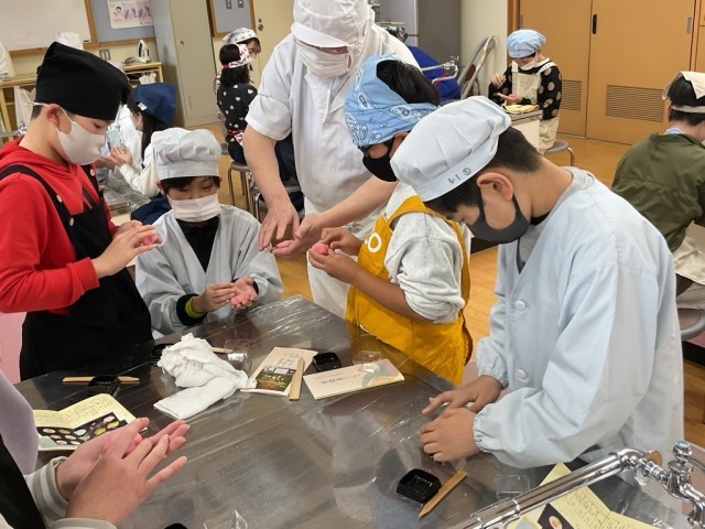 5年生は「鍵長」さんにご協力いただいて和菓子作り体験を行いました。