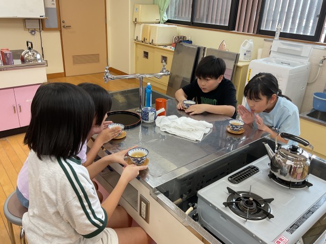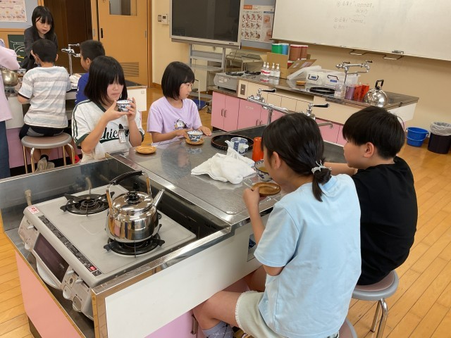 5年生から家庭科の学習が始まりました。どんな学習をしていくのか見通しをもったり、お茶を淹れて飲んだりしました。子どもたちは、これから調理や裁縫ができることを楽しみにしているようです。