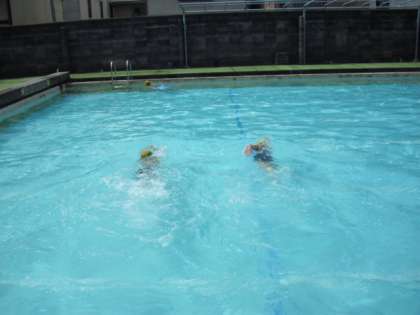 3日間の「めだか教室」も,今日でおしまいです。苦手だったいきつぎやバタ足も,ずいぶんうまくなりました。一度「泳ぐ感覚」を身につけると,どんどん泳げるようになるものなのですね。25メートルクリア,おめでとう。