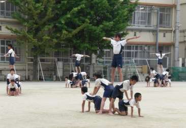 5,6年生の組体操もいよいよ仕上げ段階です。今日は,初めて運動場に出て練習をしました。一つ一つの技もかなり決まるようになってきました。「ONE HEART」みんなの心を一つに,当日は,力を結集した姿を見せてくれることでしょう。