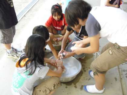 家庭科の学習で洗濯をしました。