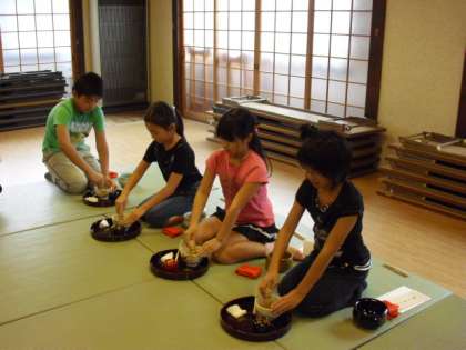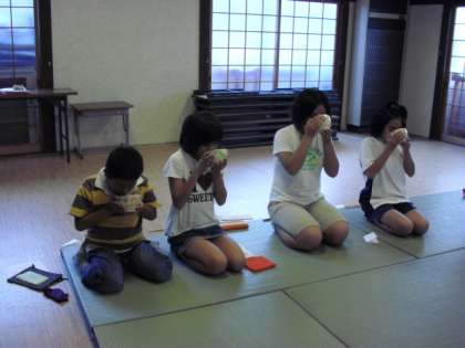 「茶道クラブ」では,現在「盆略点前」を練習しています。1年間の終わりには,校内で「醒泉茶会」も計画しています。また,和菓子作りにもチャレンジする予定です。