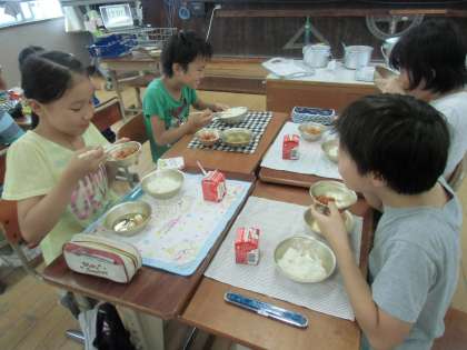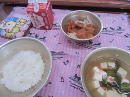 食缶のふたを開けた当番が「うわぁ〜,おいしそう〜。」と。