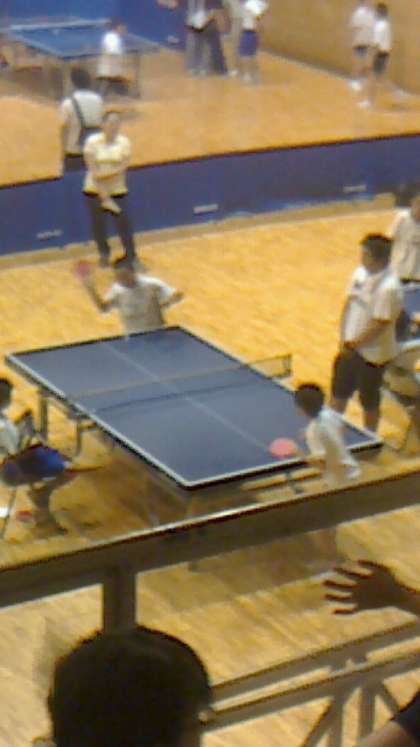 京都市小学校部活動全市交流会「卓球の部」の男子個人戦が,伏見港公園体育館で行われました。9時30分からの開会式の後,各グループの予選に続き,予選を勝ち抜いたゾーンの試合がありました。体育館の中はたくさんの出場選手と応援の保護者等で熱気にあふれ,サーブやスマッシュが決まる度にあたたかい声援があがっていました。
