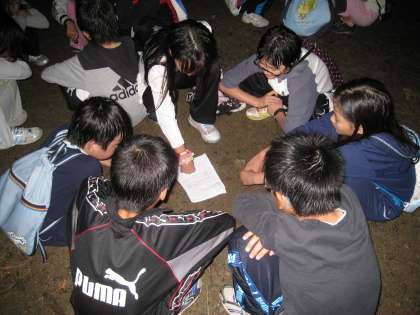 夜には,グループでキャンプファイヤーの出し物についての話し合いをしました。