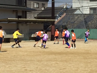 サッカー交流会が開睛小学校で行われました。20日(土)に予定されていましたが,雨天のため21日(日)の開催になり,残念ながら参加できなかった人もいましたが,6年生を中心にみんなで精一杯戦いました。