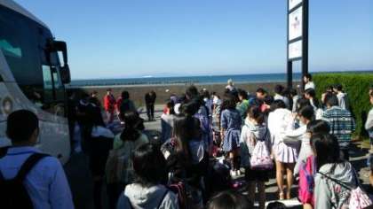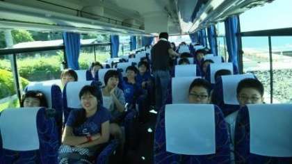 お世話になった鯱亭のみなさんとお別れをして,次の目的地,名古屋港水族館に向かってバスで出発です。