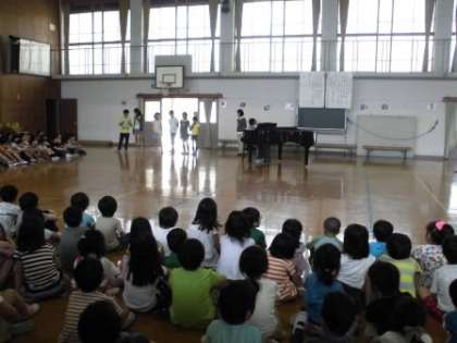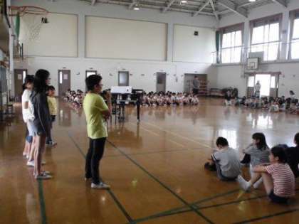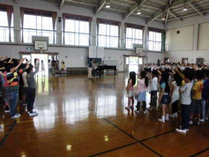 今年度1回目の「ハートフル ゆめタイム(全校音楽集会)」の様子です。