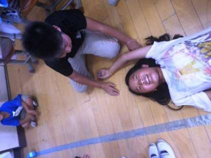 寝転んだり,靴を並べたりとあれこれ工夫して3.9(サンキュー)mの長さを想像しました。