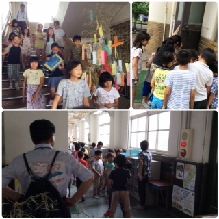 中段:校長先生の背中にもハートフルマーク!いくつのグループが気がついたでしょうね。