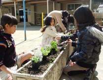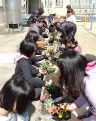 卒業式を後数日後に控えた今日(3月14日),4年生の子どもたちが大型のプランターに花の苗を植えました。体育館では式の練習も本格化しています。いよいよ我が淳風小学校6年生の,旅立ちの日が近づいてきました。