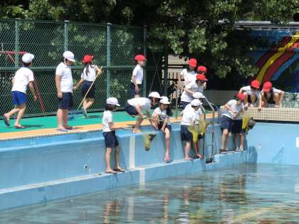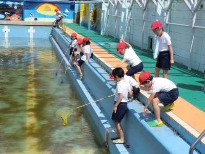 プールで生き物探し!