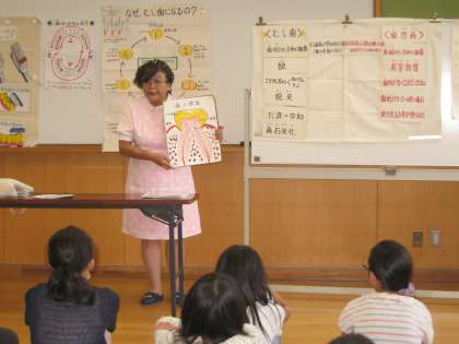 むし歯や歯周炎が,どのようにしてなるのかというメカニズムや,歯ブラシの選び方,正しい歯みがきの仕方などを教えていただきました。