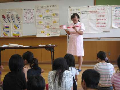 10月10日(木),歯科衛生士の白本貴子さんに来ていただいて,6年生対象の歯みがき指導を行いました。