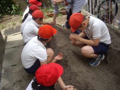 6月4日(水),間もなく梅雨入りを感じさせるようなムシッとした天気の中です。2年生は「トマト」や「オクラ」を植え付け,3年生は「ホウセンカ」や「枝豆」などの種をまきました。これからの季節は人間にとってはややも過ごしにくいかもしれませんが,植物にとっては大きく成長する大切な時期でもあります。雑草の侵略に負けないように世話をして,しっかりと育てていきましょう。