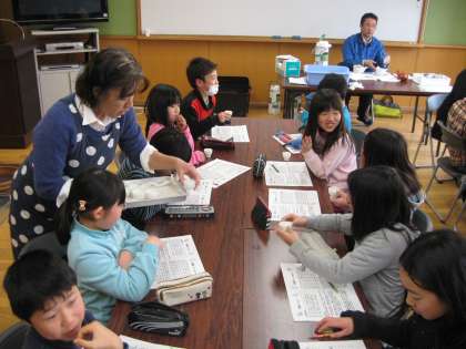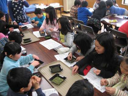 5種類のお茶の色や香り,味などの特徴を知ってから,茶香服に挑戦。5種類全てを当てられた子どももいましたが,なかなか難しかったようです。