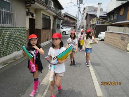 前回の校区探検はみんなで一緒に行きましたが,今回はグループに分かれて,行きたいコースで探検します。