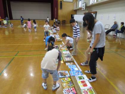 1年生,6年生,にじいろ学級の選書会の様子です。