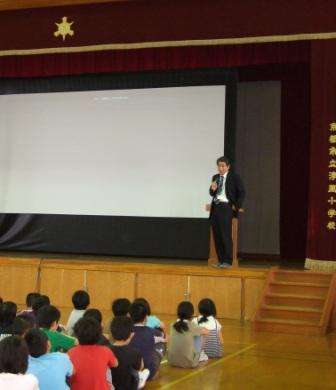 141回目の誕生日の今日,それをお祝いする記念式を行いました。現在の校舎が完成した1931年(昭和6)に発行された記念写真帖をもとに校長先生がお話され,次に,淳風小学校に通われた教育後援会長の山田さんに,当時のお話を伺いました。