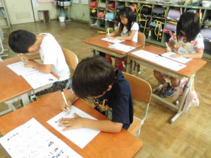 無言で正しい姿勢で,集中して書くことができるようになりました。