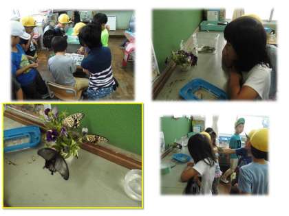 朝教室に行くと,教室に何かが飛んでいました。よく見ると蝶です。子どもたちは朝から大興奮です。幼虫のころからずっと大切に育てていて,さなぎになり,蝶になるのを楽しみにしていた子どもたち…まだかな。まだかな…。
