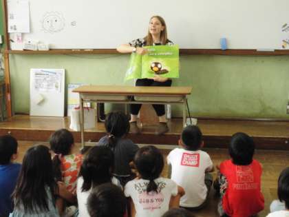ロファー先生が,英語で絵本の読み聞かせをして下さりました。今日は色に関する絵本です。みんなで読んだり,発音したりして学習しました。挨拶・色などたくさん英語で話せるようになりました。