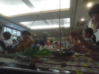 その話を聞いてから実際に生け方を教えていただき,子どもたちも生け始めました。