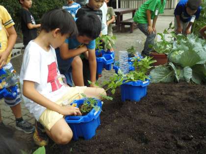 お世話を忘れて全部枯らしてしまった子もありましたが,畑の植物はみんなで大事に育てようねと確認しました。(植木鉢では,もう一度種から再挑戦しています。)