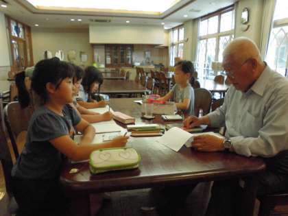 社会科の調べ学習で,「神社やお寺,文化施設の多い地域」について調べている子どもたちのためにコミュニティティーチャーとして,地域の本政さんが来てくださいました。京都に古くからある神社についてお話してくださいました。