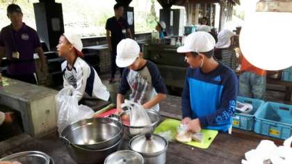朝食を食べたばかりですが、またまた野外炊事です。