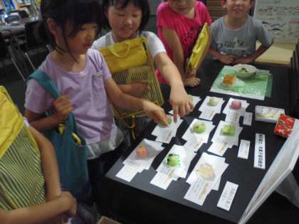 京野菜や京菓子・お茶・四季折々のお膳やおばんざい,また,市場の歴史など子どもたちはとても楽しく学ぶことができました。夏休みのイベントについてもご案内いただき,「また来てみたい!」と興味が尽きない様子でした。