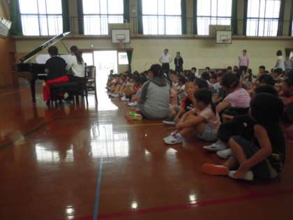 1台のピアノですが,4手,6手で演奏すると迫力満点でした。子どもたちも静かに楽しく聴いていました。