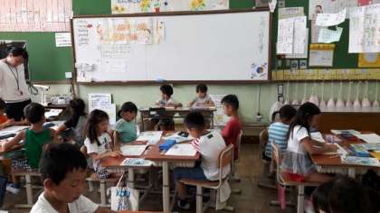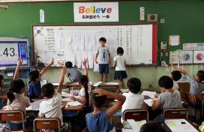 1枚目の写真は4年生,2枚目の写真は2年生が司会をしているところです。司会を始めたばかりですが,自分たちで頑張って授業を進めることができていました。
