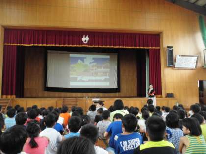 「自分の中にある4つの木(げんき・ゆうき・やるき・こんき)は,しっかり生長していますか。」という問いかけに,たくさんの子どもたちが手を挙げました。