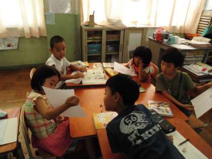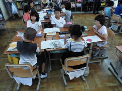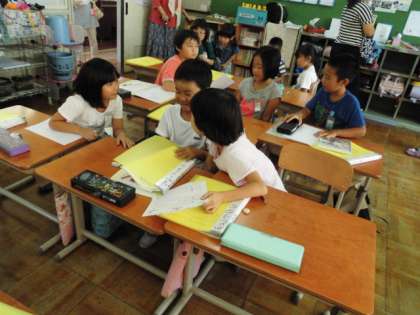パワーアップタイムで言葉の学習もしています。今日は夏休みの思い出ランキングを行いました。楽しかった夏休みの思い出の中から3つの思い出を『えらび』,『くらべて』ランキングをきめます。そして『わけ』を考え友だちに伝えました。