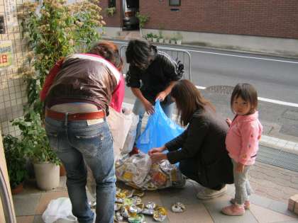 朝早くからたくさんのアルミ缶が届いていました。今日は全部で大きなごみ袋4袋いっぱいになりました。