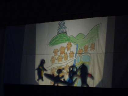 5日(金)は,学芸会でした。今年は影絵で「ちからたろう」をしました。自分たちで作った紙の人形やOHPシートにかいた背景を使ってしました。「ちからたろう」は子どもたちの大好きなお話で,お話を楽しみながら毎回練習をしていました。練習を重ねるたびに手伝ったり教えあったりすることもあり,協力できるようになってきました。本番では,緊張していましたが一生懸命にしていました。子どもたちはそれぞれの学年にも出演しました。2つ練習するのは大変だったと思いますが,とても楽しんで学年の友達ともなかよくできていました。学芸会を終えて,とても満足そうな子どもたちでした。