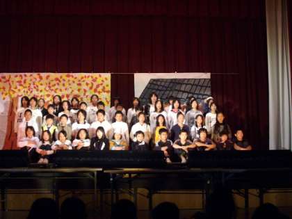 先週の金曜日に学芸会がありました。今年は、社会科で学習した「戦争」がテーマの劇に取り組みました。「戦争」について知らない下級生に伝えるにはどうしたらよいのか、1人ひとりが悩みながら練習を進めました。また、今年は、照明・音楽・衣装・大道具についても自分たちで考えました。当日は、教師の手を借りることのなく、すべて自分たちで行いました。演技も、最高の演技を見せることができました。演技終了後、子どもたちの思いが伝わったのか、涙を流す児童や保護者の方も見られました。子どもたちの、「伝いえたい」という熱意が伝わったのだと思います。小学校生活最後の学芸会。学年が心を1つにしがんばることができました。