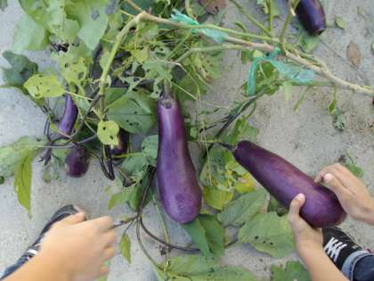 反対に大きくなっていたのが時期をすぎたなすでした。さつまいもの葉の陰になっていたので気づきませんでした。虫にも食べられていてもう食べられませんが,なすとは思えないほど知らないうちに大きくなっていました。