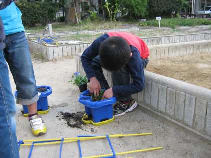 毎年「花と緑の農芸財団」に花の苗を応募していたものが,今年初めて当選し,ビオラ・パンジー・ノースポール・西洋さくら草あわせて288株送られてきました。1・2年生は,一人一鉢の取組で植えましたが残りは栽培委員会・川島管理用務員さんたちのお世話になりプランターに植えられました。