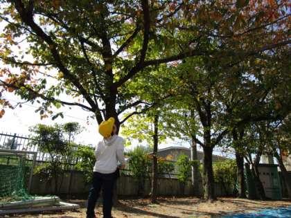 色づいた葉を近くで見ようとした子にどうだった?と聞くと